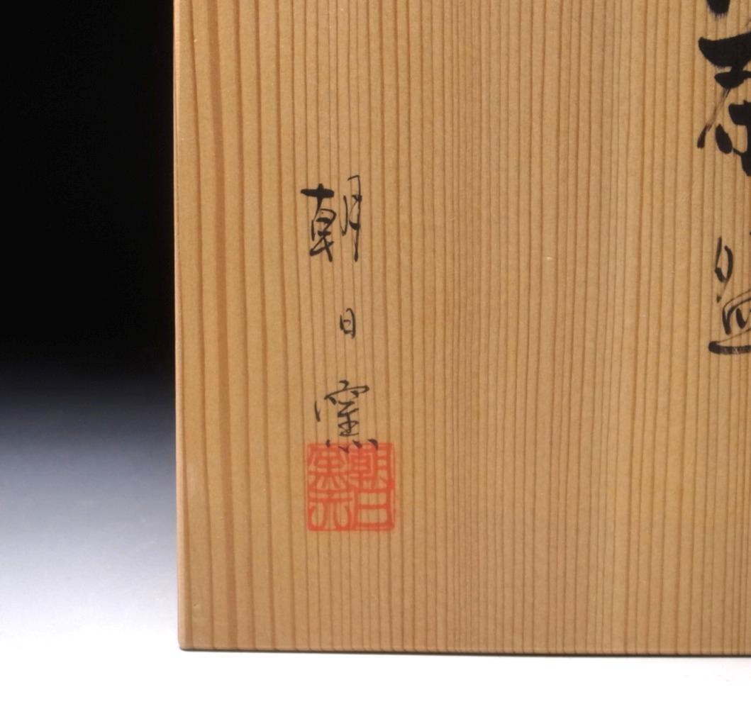 Asahi was famous from the commencement for making vessels in which the ground tea was stored, but it also produced those objects which have been described as being related to the Tea ceremony. So famous were these vessels, that a noted chajin, leader of the ceremony, no less a man than Kobori Masakatsu, son of Kobori Totomi-no-Kami, the founder of one branch of these ceremonies, encouraged the potter by honouring him with a seal for marking his ware. The presentation of a seal for this purpose was a distinct recognition of merit. The tenth Zengoro received a gold seal from the Prince of Kii in 1827 and a silver seal inscribed Yeiraku.