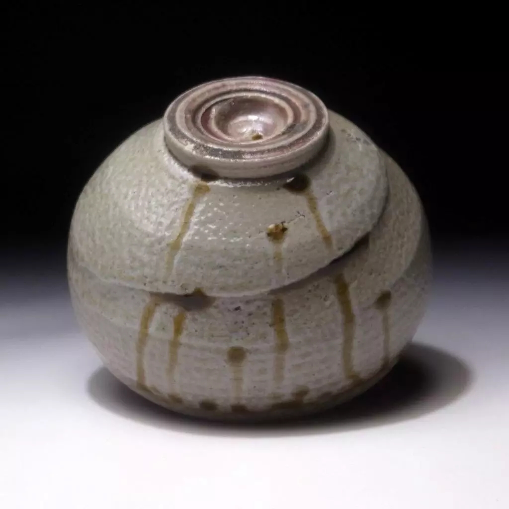As the third son of Fujiwara Rakuzan I, he faithfully continued the family lineage in Inbe, Bizen City, refining inherited techniques while elevating them through his own artistic vision. In 1930 he succeeded the first generation by taking up the name after his father’s passing. Widely praised as “Rakuzan of tea bowls and incense burners” (Chawan to kōro no Rakuzan), his work is marked by both technical mastery and refined aesthetic sensibility. He was especially celebrated for his command of Ao-Bizen, a rare and highly prized blue-gray expression of Bizen ware, achieved through a closely guarded family technique involving a uniquely constructed kiln and the use of salt water during firing. He received the Okayama Nichinichi Shimbun Arts & Culture Achievement Award in 1988 (an award that is given in recognition of significant contributions to arts and culture), before passing in 1996.